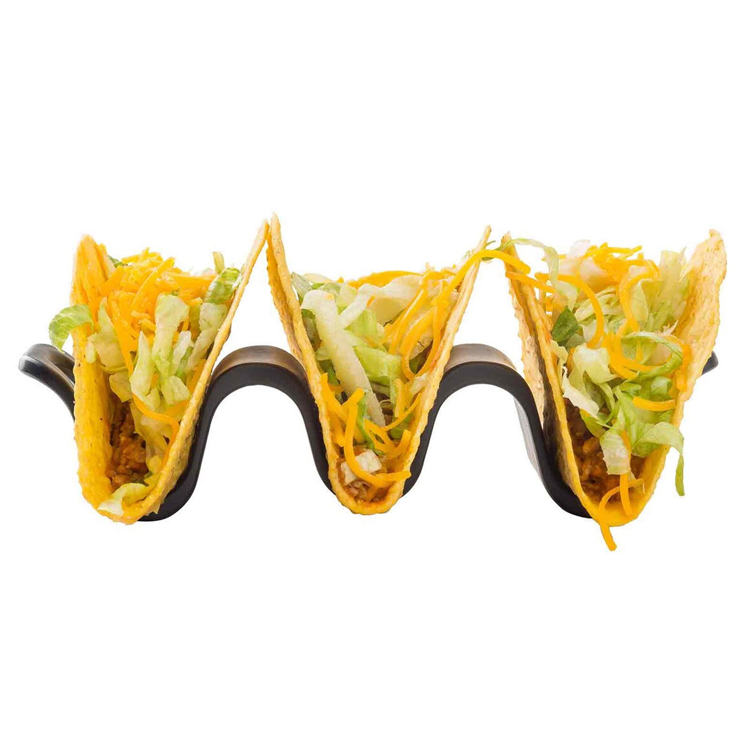 Perfectamente diseñado para acunar tus creaciones rellenas: úsalo con tortillas de 10 o 17 cms. También es ideal para tacos de cáscara dura, wraps de lechuga.