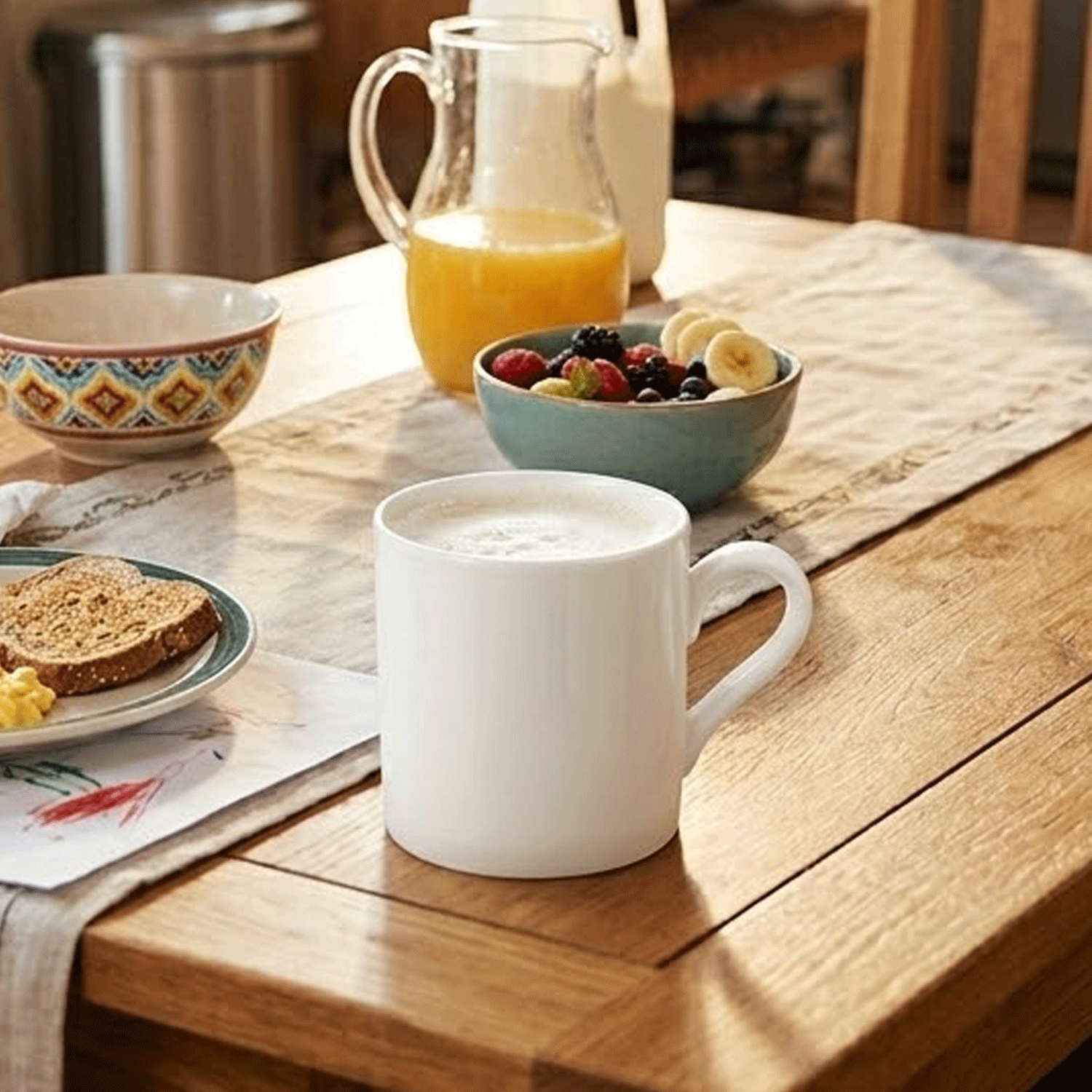 «Empieza tu mañana con claridad.» – Resalta el diseño blanco puro que combina con cualquier amanecer.