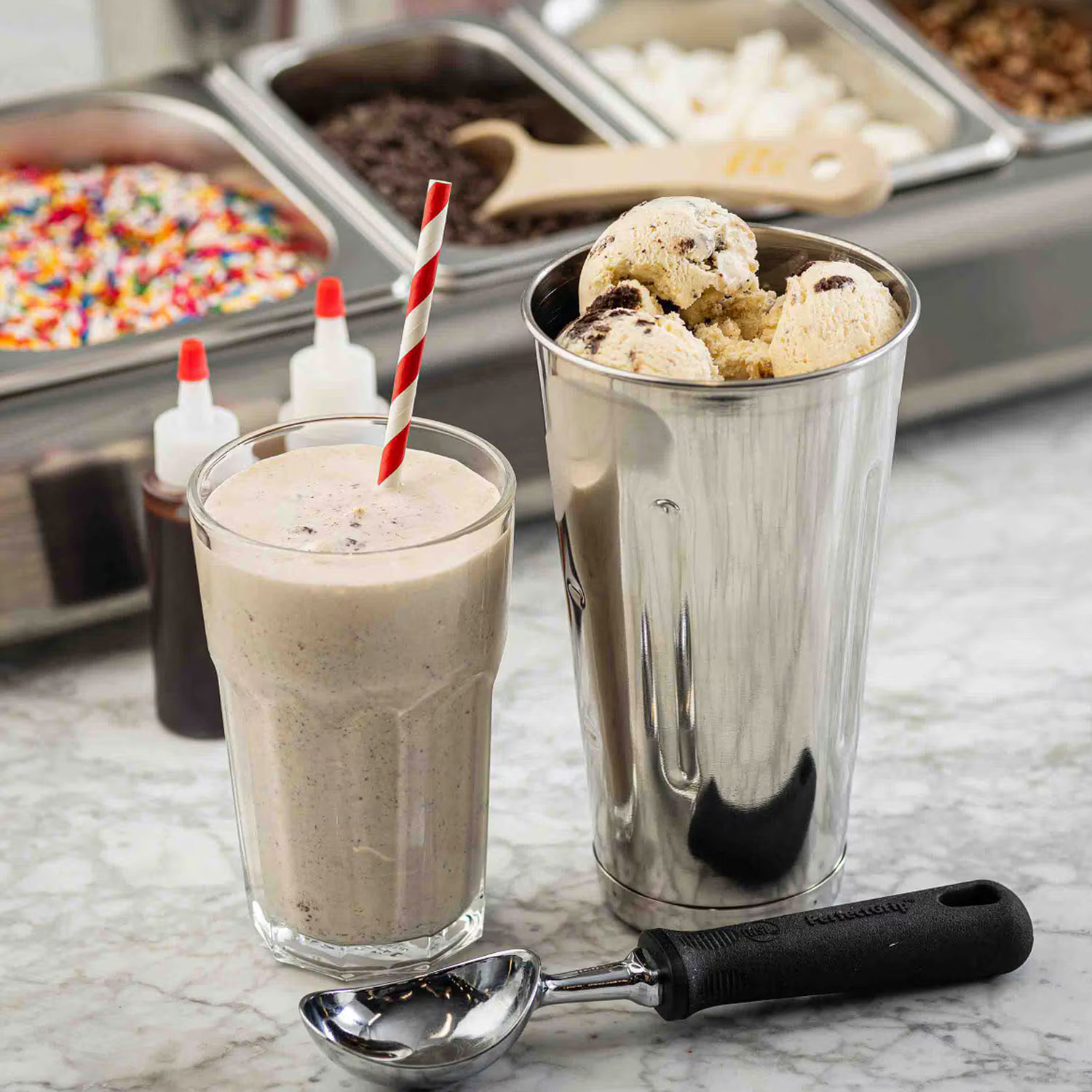 ¡Haga y sirva batidos esponosos, maltas, refrescos italianos y otras bebidas novedosas en esta taza de malta de acero inoxidable de 30 onzas! Diseñado para usar con su batidora de bebidas estándar, esta taza de malta le permite agregar ingredientes fácilmente y mezclarlos para un dulce satisfactorio.